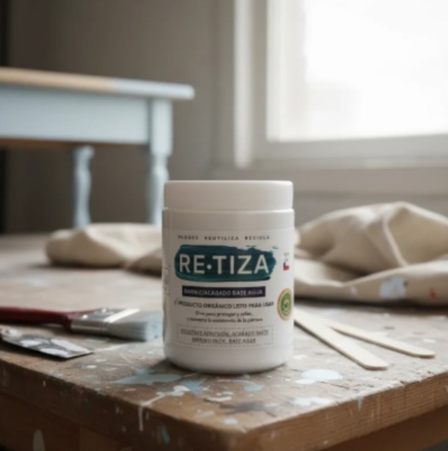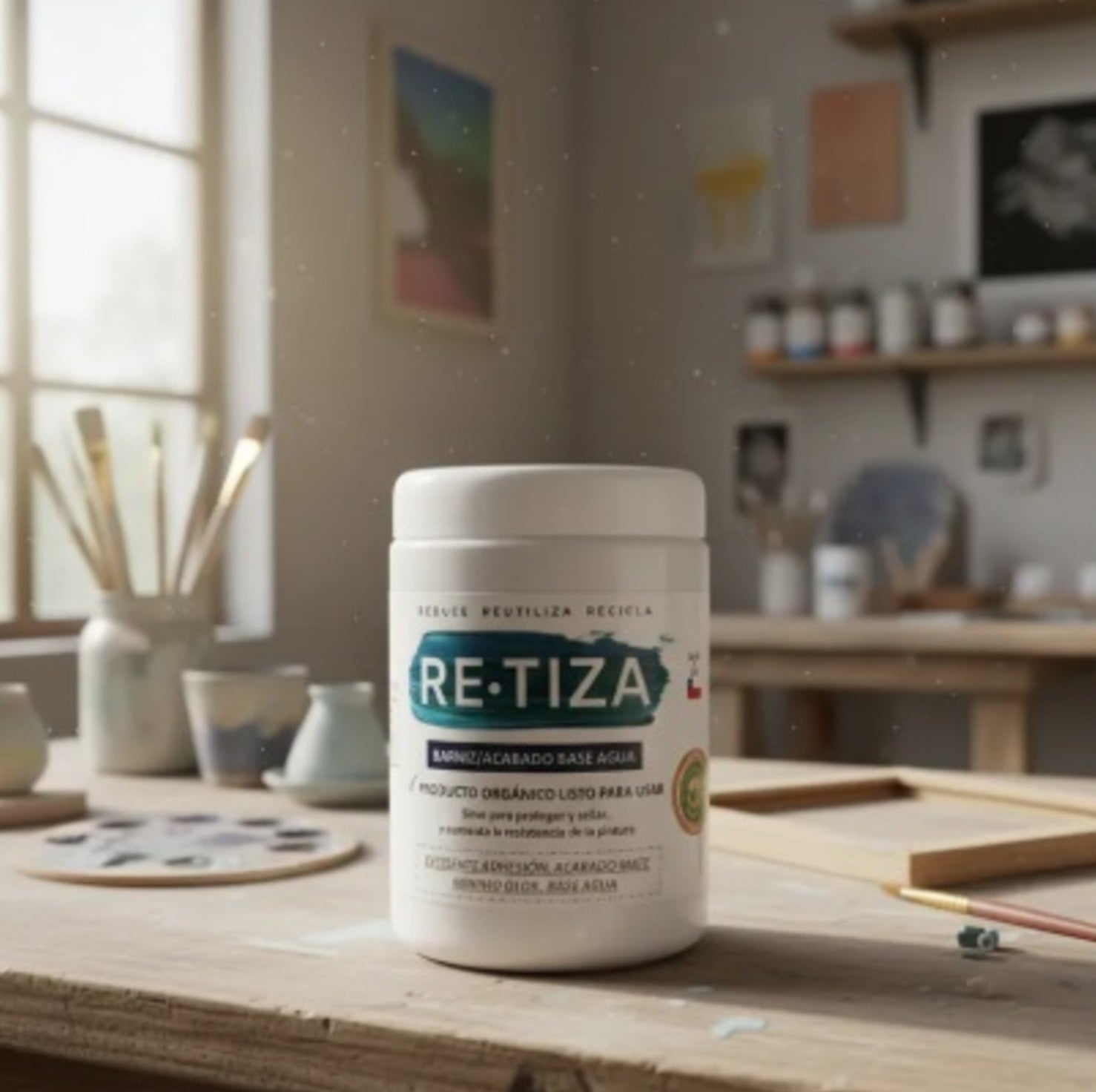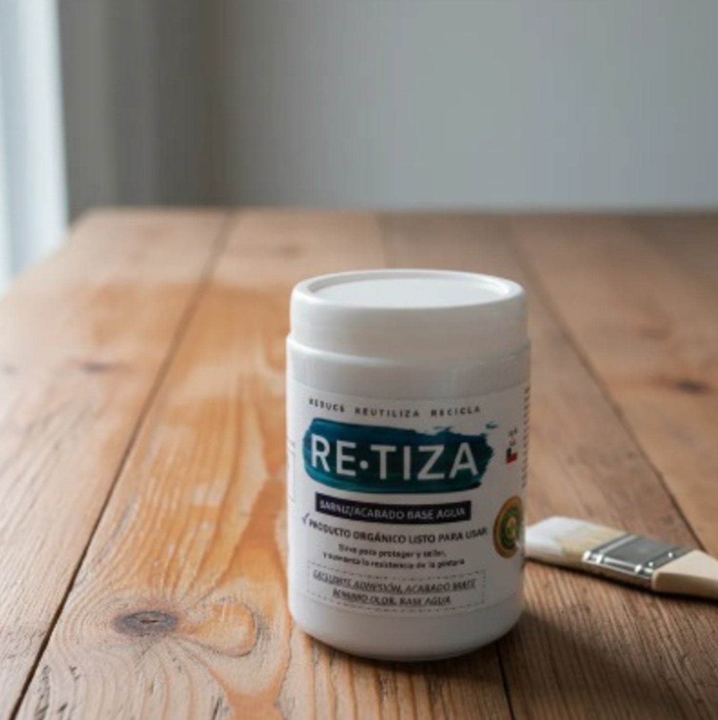 El Acabado Ecológico base agua mate, está diseñado para sellar y proteger la pintura, ofreciendo una terminación transparente que mantiene el tono mate. Aunque es blanco en el frasco, se vuelve transparente al aplicar.
